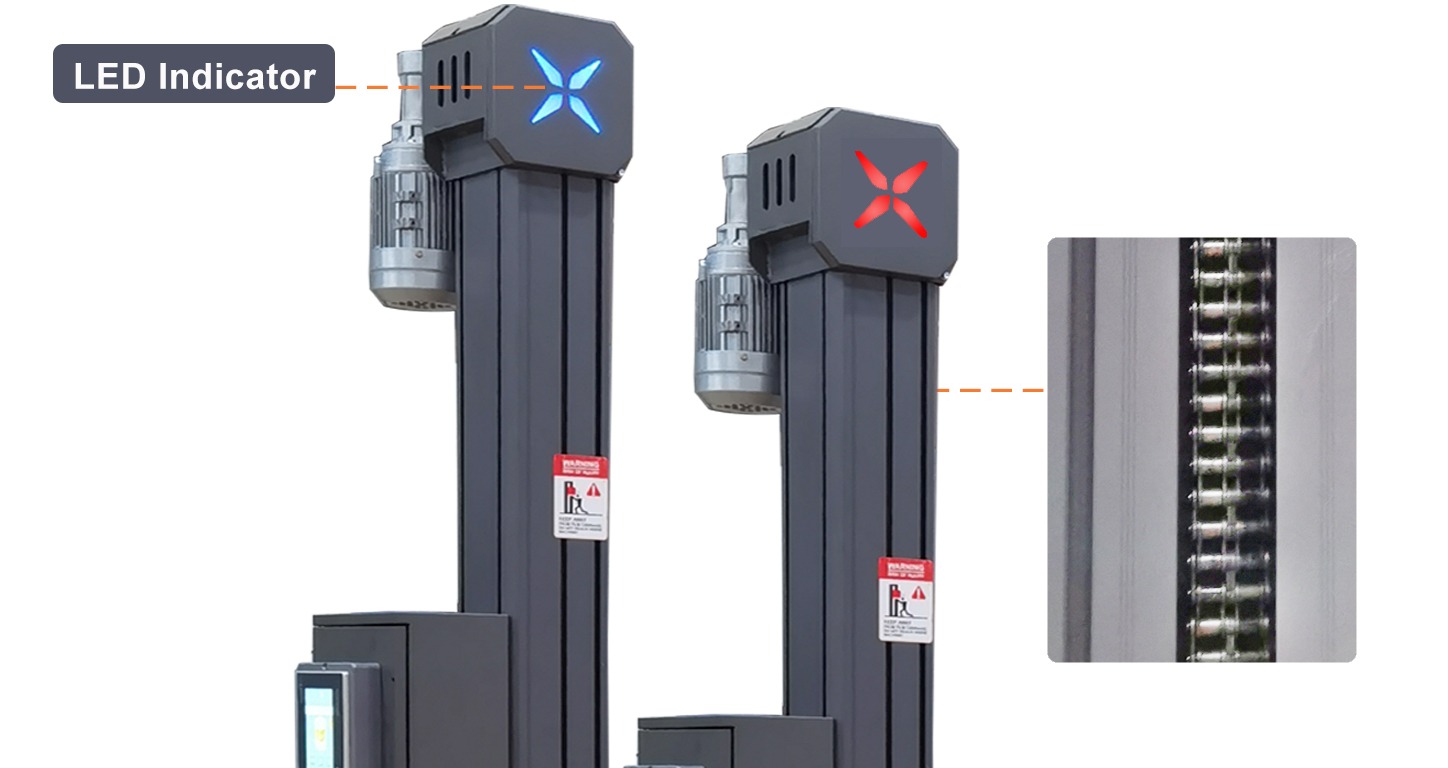 An LED tri-color light indicates machine status during operation and maintenance for enhanced safety and monitoring.